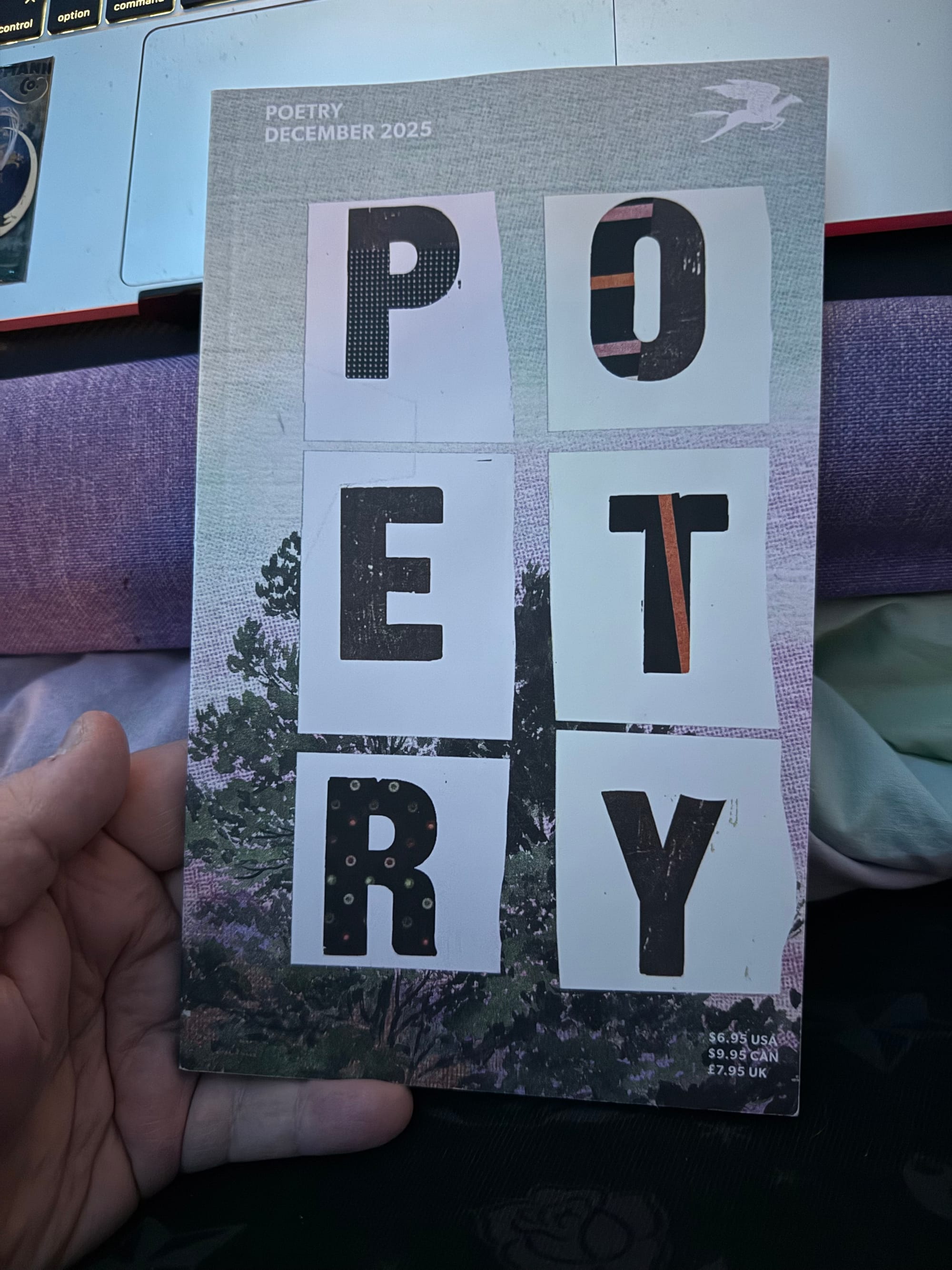 Cheating a little bit here. I've been pretty overwhelmed with life and so haven't started a new book yet, and probably won't until around Christmas (when I'll have some time off from work). Poetry Magazine is a good way to get my fix in between new reads.